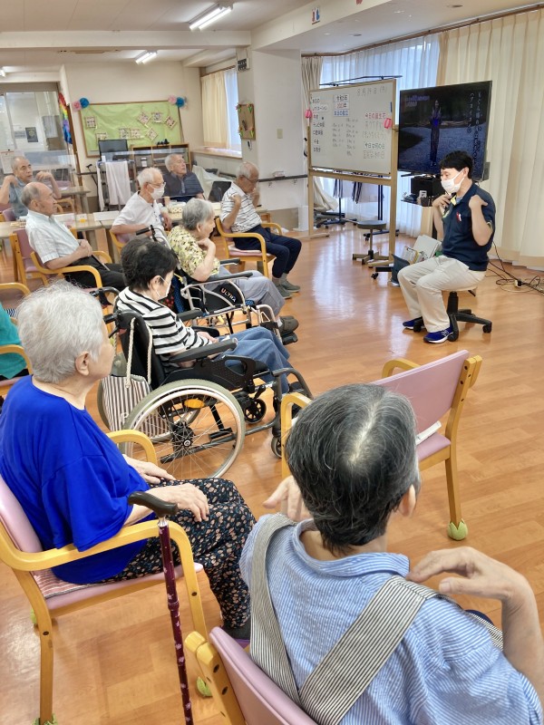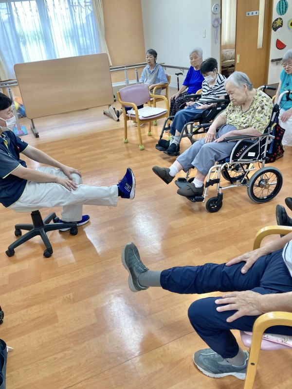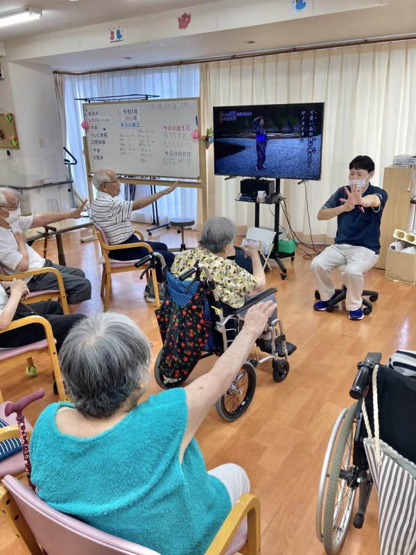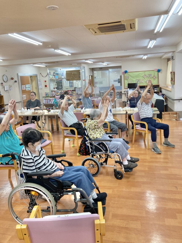 皆さん、10分程度体を動かした後に、あんしん体操、歌を歌っています。