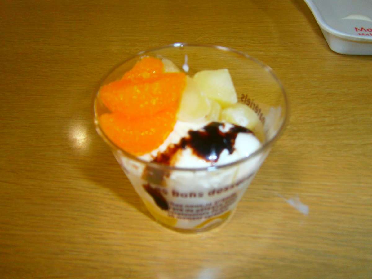 そして誕生日会のおともはというと、今回はアイスクリームと果物をトッピングし、チョコソースをかけたものをお出ししました!