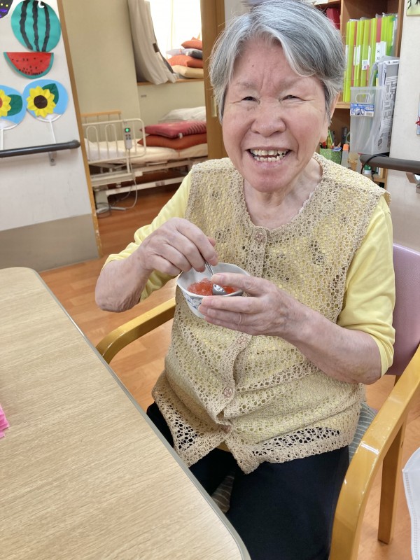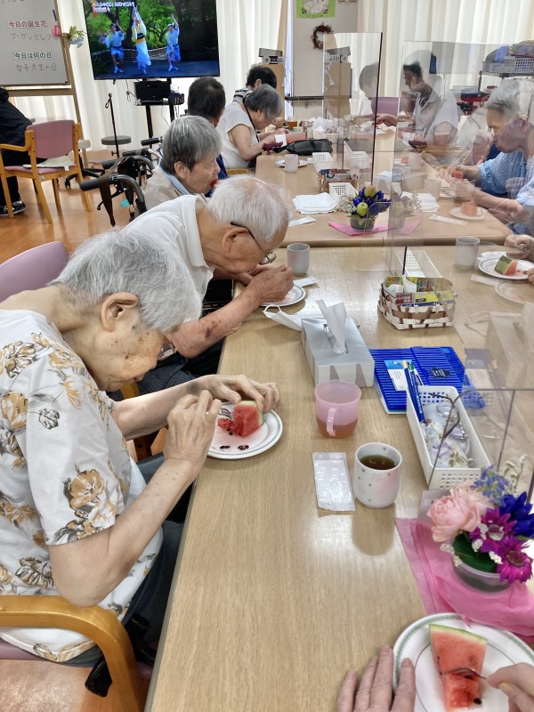 おやつを召し上がられた後に、今月誕生日の方を皆でお祝いしました。
