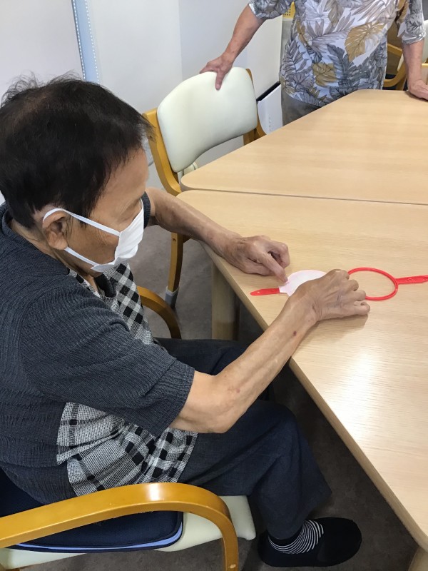 始める前にご自分で紙を貼って頂きました。