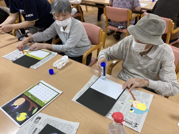 折り紙の色や貼り方で同じ材料でもやはり違う作品が出来上がるので一人一人素敵な作品が完成しました(^^)/