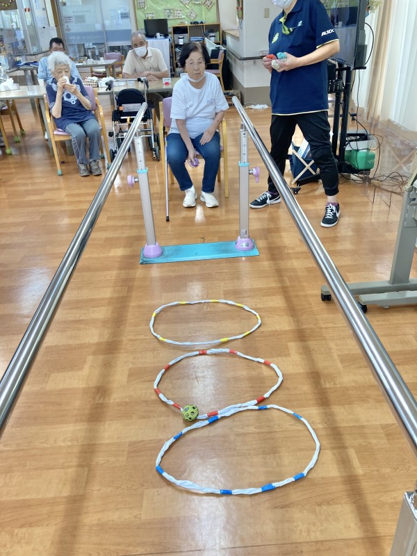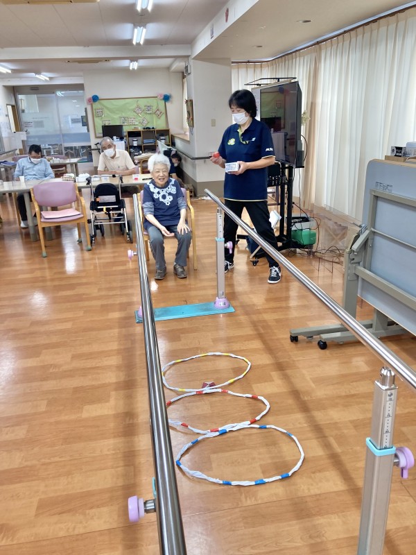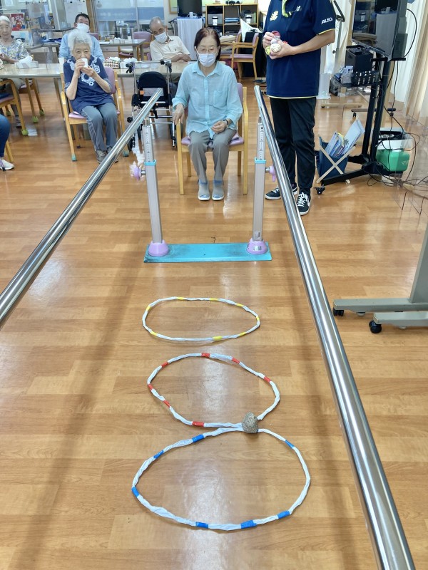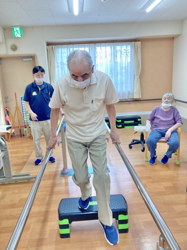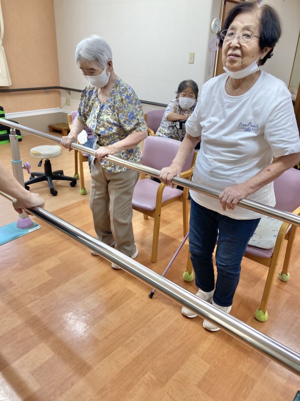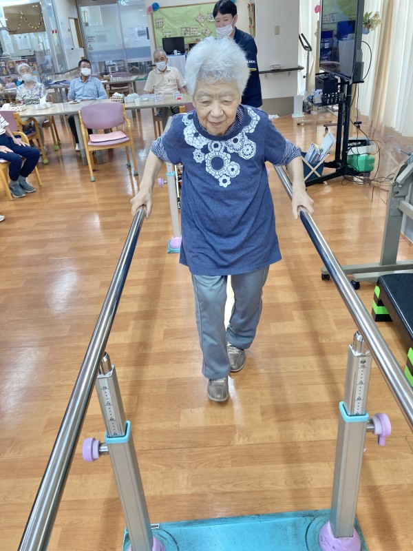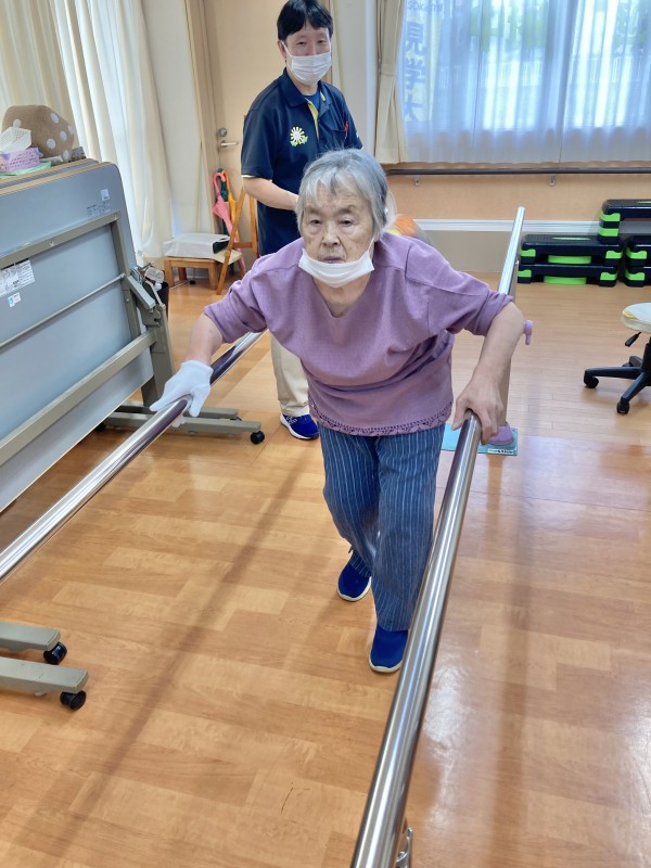 皆さん、しっかりした足取りで平行棒を使って歩かれていました。