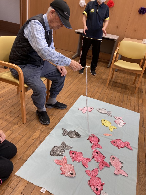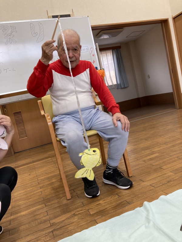 魚釣りが大好きな利用者様は、満面の笑みを浮かべ
