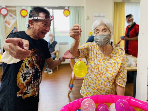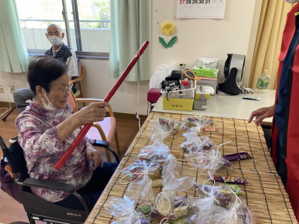 こちらはお菓子の詰め合わせが入った袋を吊り上げるゲームです。