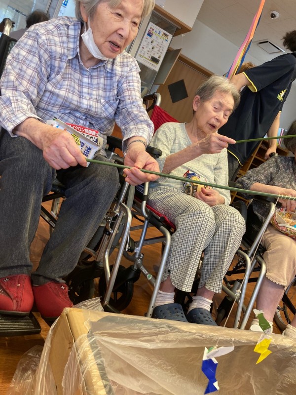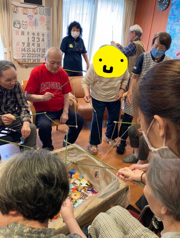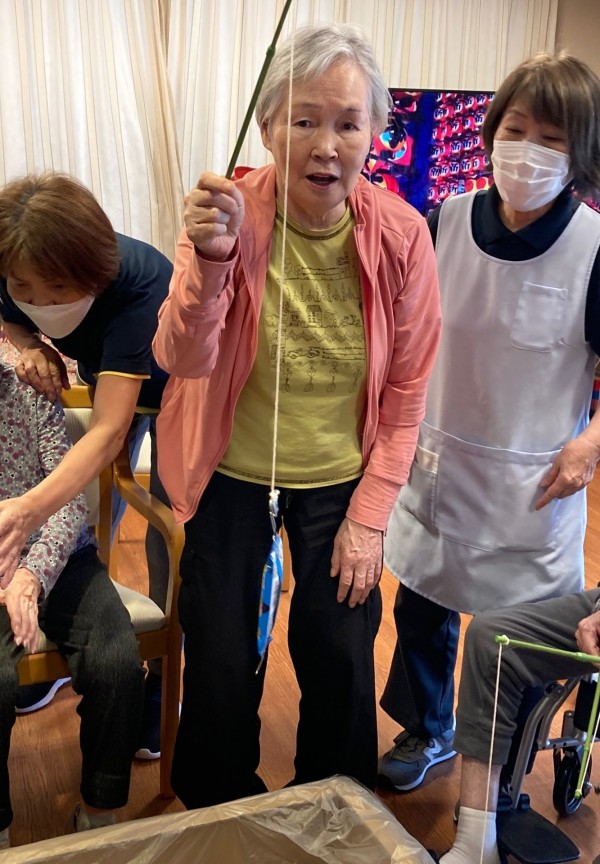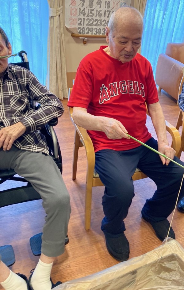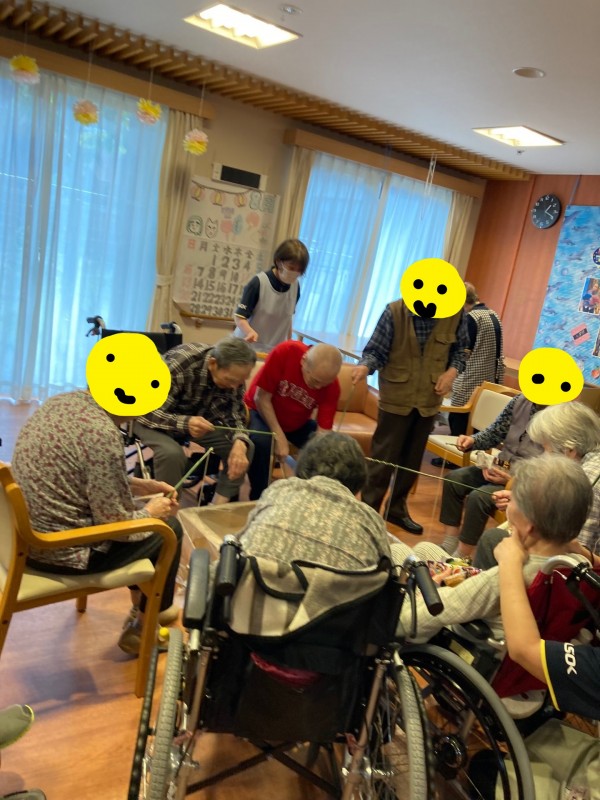 魚おやつ釣りとは、職員が作った、段ボールの生け簀に、