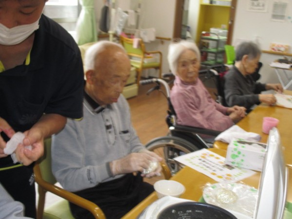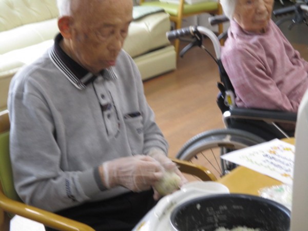それぞれにおにぎり????を作っておられます( ^ω^)・・・ 上手に握っています(^^♪)