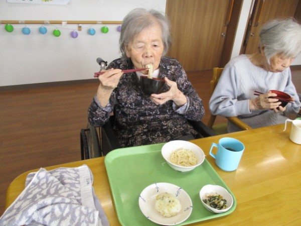 こんにちは! グループホームみんなの家・あきがせの介護ブログです! よろしくお願いいたします! 今日は2階でそうめんとおにぎりの昼食を提供しました。そのご様子をお知らせいたします!