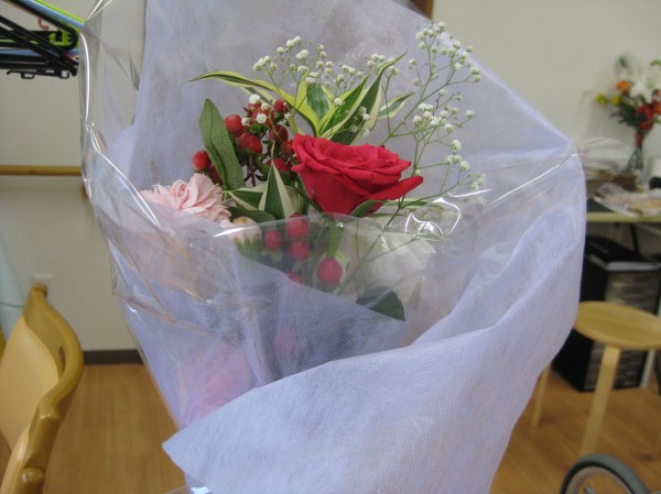 バラやカスミソウのお花綺麗ね(*^。^*)と嬉しそうでした。