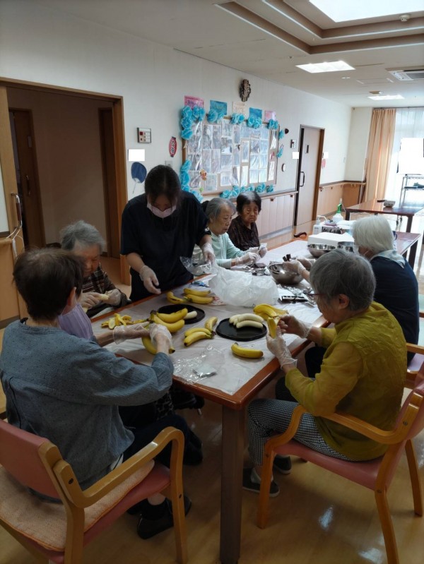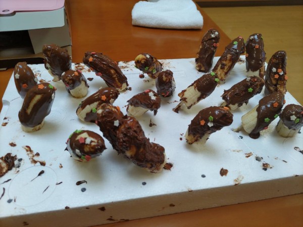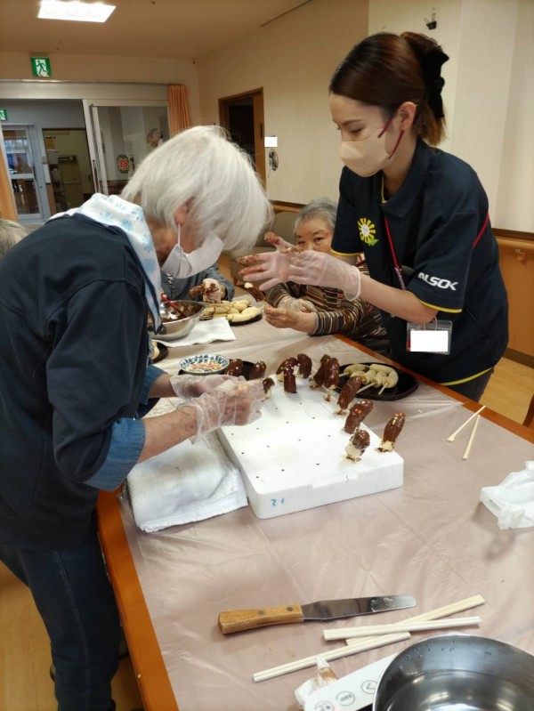 皆さまチョコバナナ一回ぐらいは食べたことあるも、作ったことなどない方ばかり、職員も一昨年ぶりのチャレンジです。
