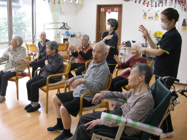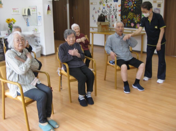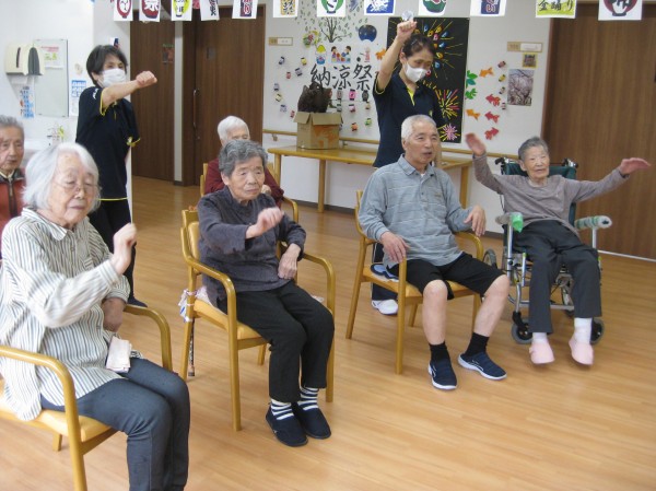 職員さんも一緒に踊っています。 さすが職員さん、上手ですね(*- -)(*_ _)ペコリ