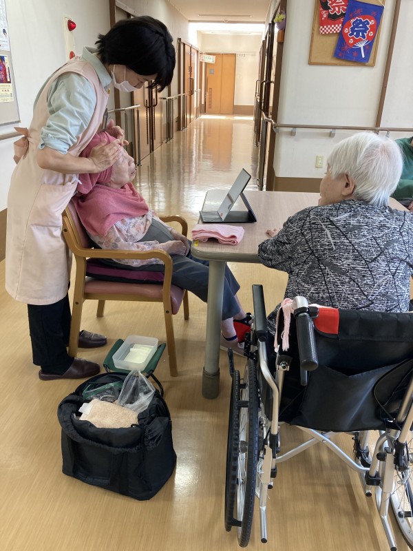 訪問マッサージのフェイシャルエステ。。。とっても気持ちよさそうなんです(≧▽≦)施術をうけられているご入居者様皆さまうっとりされています。