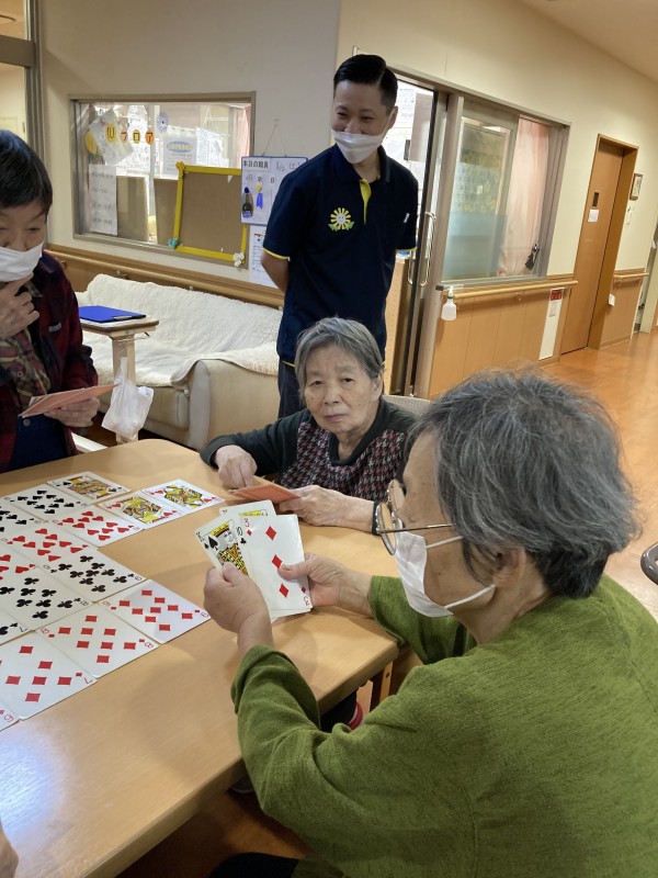先日、レクリエーションの時間に、皆さんでトランプをされました!