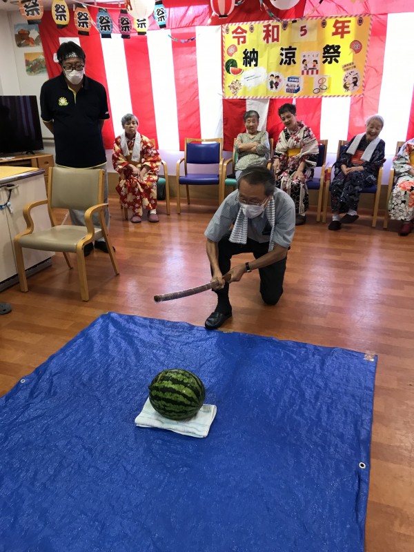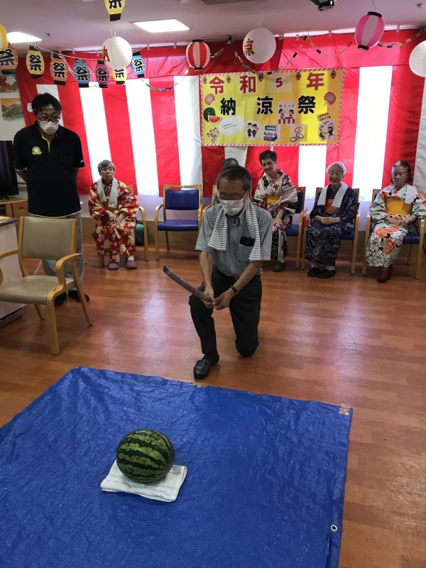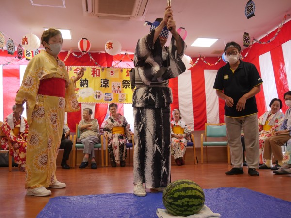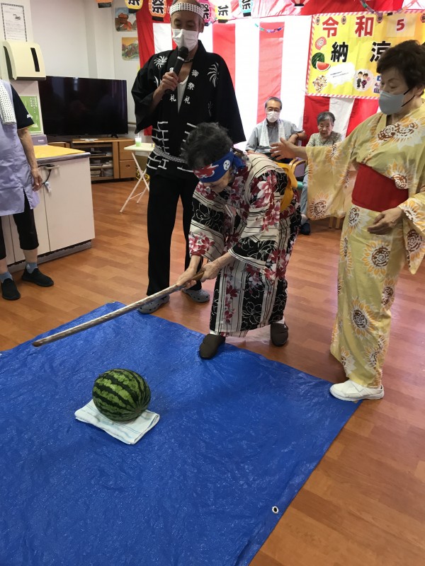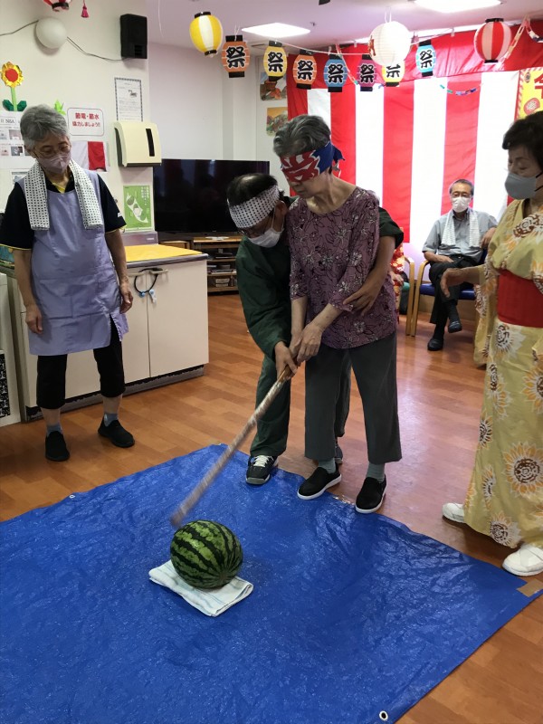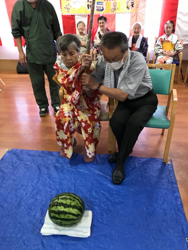 続きまして、三郷2納涼祭恒例「スイカ割大会」ですっ!!