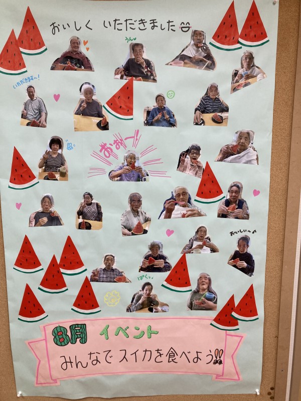 ★☆8月のおやつレクリエーション記念写真を掲示板掲載2023年(^^✨ 『みんなの家・三橋6丁目・介護ブログ』☆★