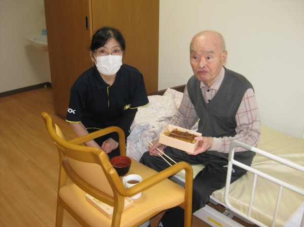 こんにちは! グループホームみんなの家・あきがせの介護ブログです! よろしくお願いいたします。 今日はご家族様から昼食にうな丼の差し入れがありました。 うな丼ですよとお伝えするとキョトンとされたいました。お嫁様からいただきました。とお伝えすると、喜ばれ嬉しそうなご様子でした!