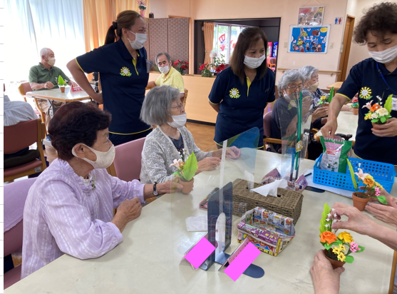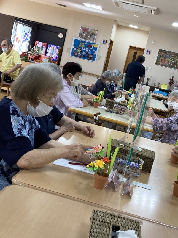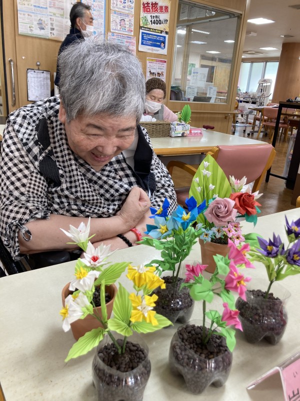 遊・東浦和では先日、皆様で折り紙のお花を活けました(^^)