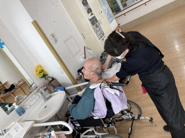 理美容技術だけでなく、車いすの方や不穏症状のある方への