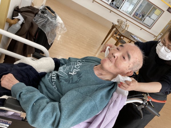 髭剃りをしてもらい、ご利用者様も笑顔で大満足です\(^o^)/