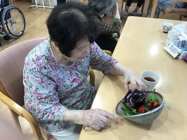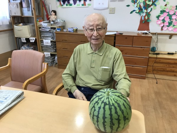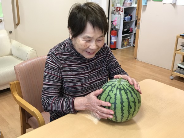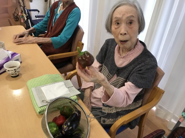 先日、ホームの畑から野菜などを収穫しました!猛暑が続いていましたが、立派に育ちました!すいかはずっしりと重く、ご利用者様は「あら~畑でとれたんですか?」と少し驚いていた様子でした!甘くて美味しかったですね♪茄子とピーマンは張りがあり、「とれたてでおいしいでしょうね~」と声が聞かれ、みそ炒めにしました!今は何を育てているのでしょうか?次の収穫が楽しみです!