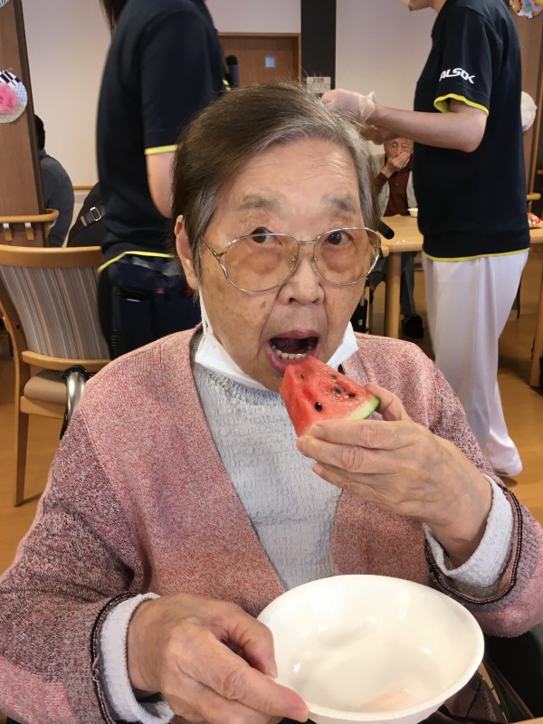 ビンゴ大会の後は、スイカを食べました!