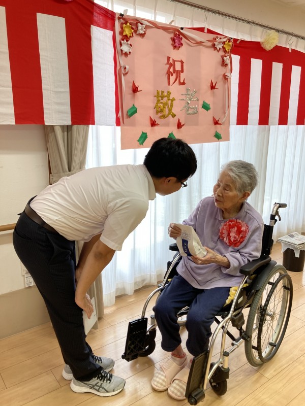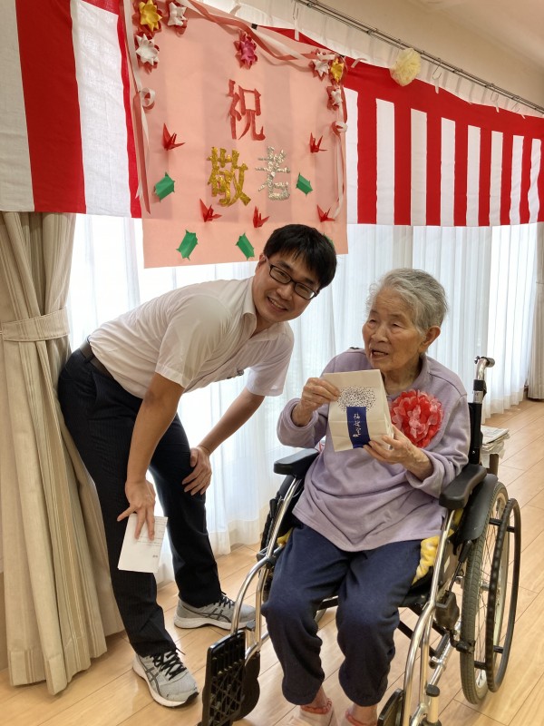 ★☆令和5年-敬老会実施-山田大誠ホーム長より白寿99歳祝い記念品贈呈2023年(^^✨