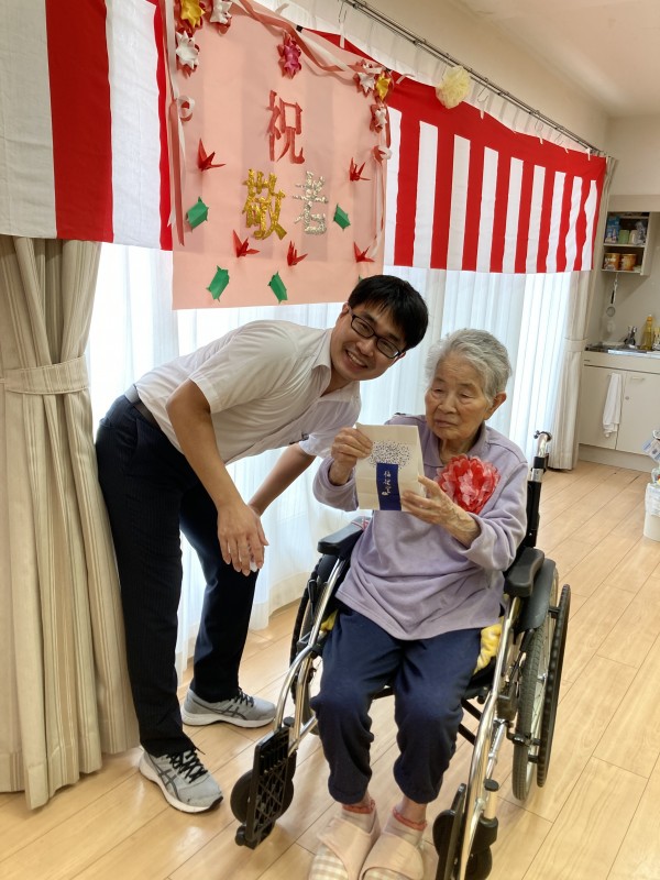 ★☆令和5年-敬老会実施-山田大誠ホーム長より白寿99歳祝い記念品贈呈2023年(^^✨ 『みんなの家・三橋6丁目・介護ブログ』☆★