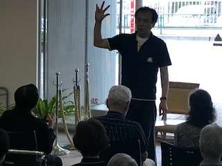 今回はオレンジカフェ同時開催で実施、グループホームの入居者の方々が大勢いますが、有料老人ホームすこや家西尾久の入居者様は岡田先生が大好きなので無理やり参加です~
