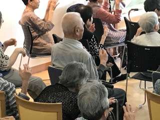 後半では面会に来たご家族様も飛び入り参加され大人数での体操です