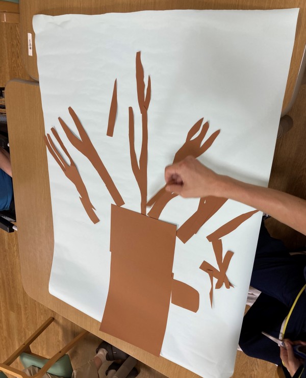 今回は大きな紅葉を作ってみようと思います。まずは土台となる大きな木を模造紙に貼りました。