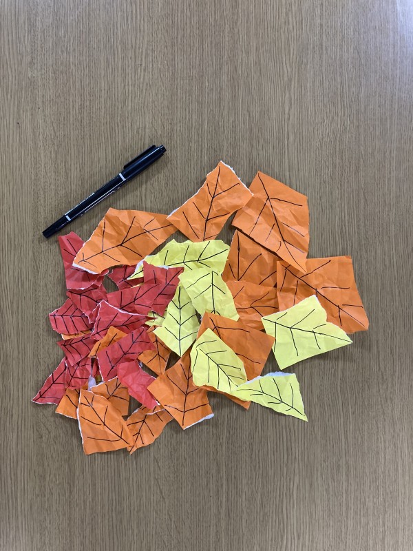 あえてくしゃくしゃにしてリアル感のある落ち葉や紅葉が出来てきました。