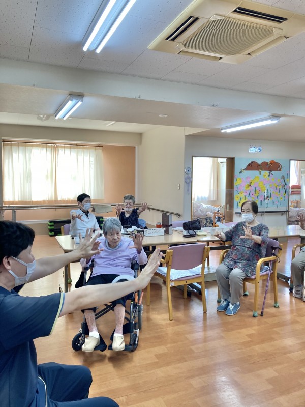 10分程度、体を動かした後に体操しています。皆で、歌を歌ってからおやつとなりました。