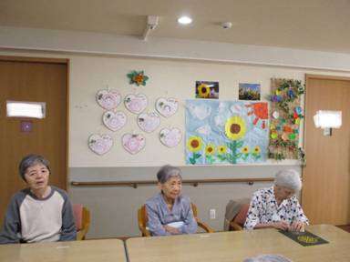 この暑さでしょげてしまいそうですが、ヒマワリで元気をもらって利用者様も思わず『綺麗だねー。』と喜んでいます。