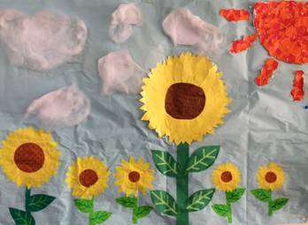去年スタッフと利用者様とで作ったヒマワリの大作をまた引っ張り出して飾りました。