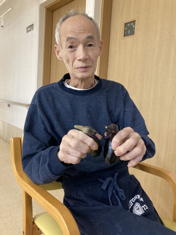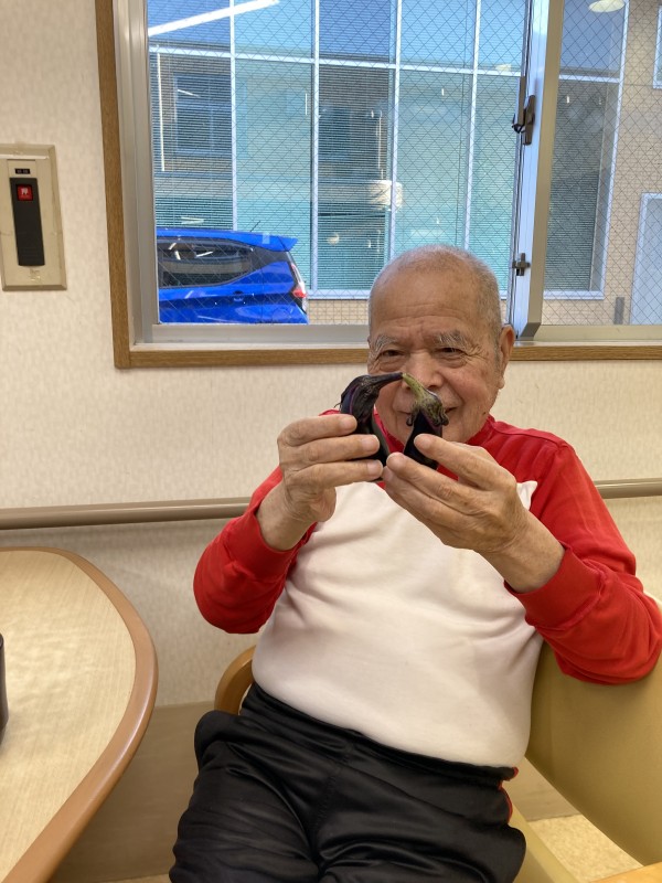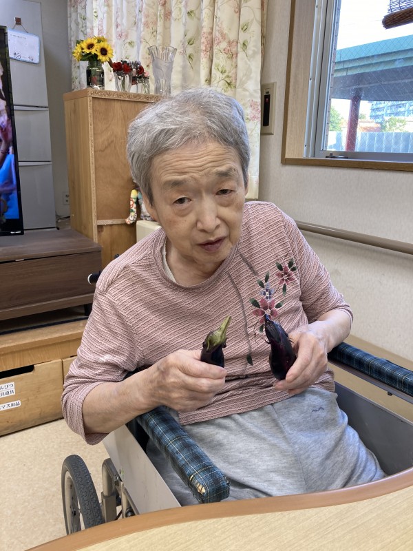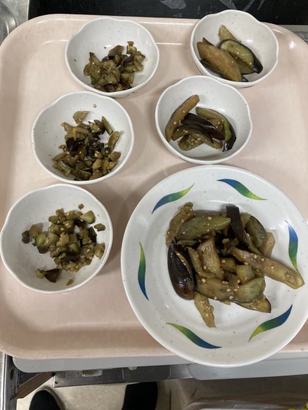 朝の収穫を終えランチタイムに茄子の炒め物を提供致しました。