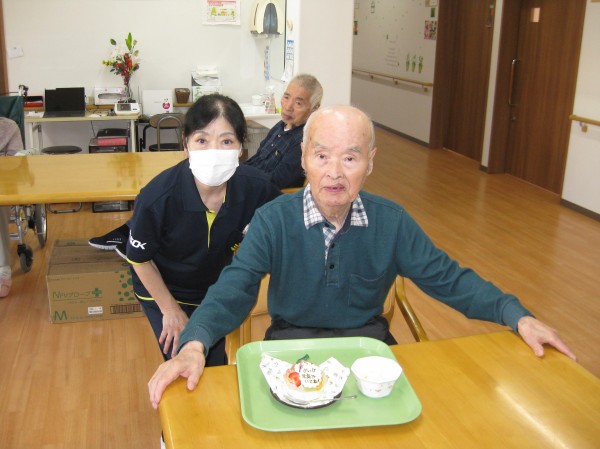 今日は9/18 敬老の日です。ご家族様からお祝いにケーキをお持ちくださいました。