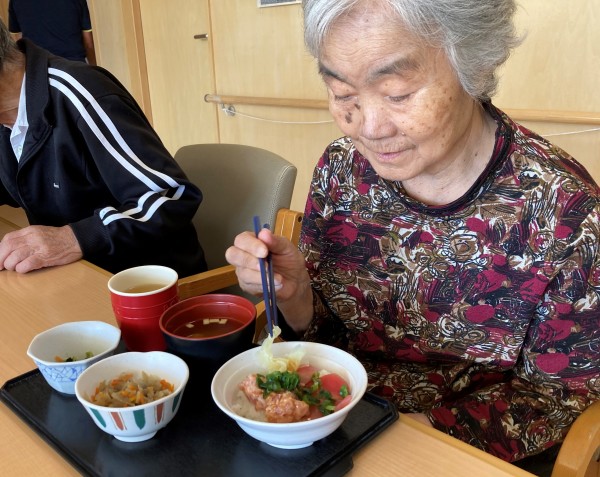 本日は敬老の日、お祝いに普段はあまり食べないメニュー、海鮮丼を召し上がっていただきました。