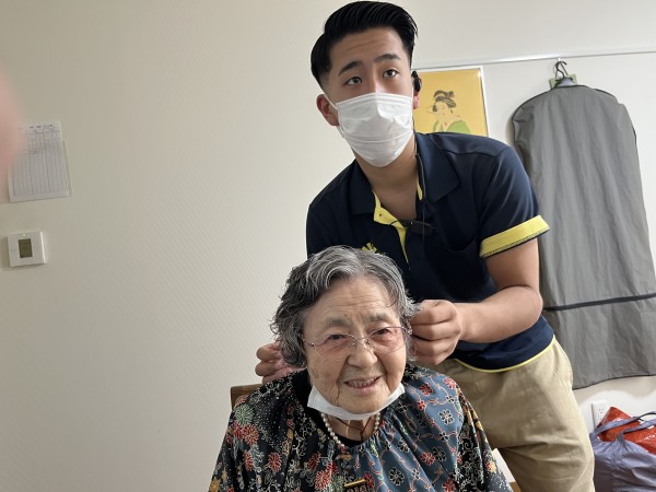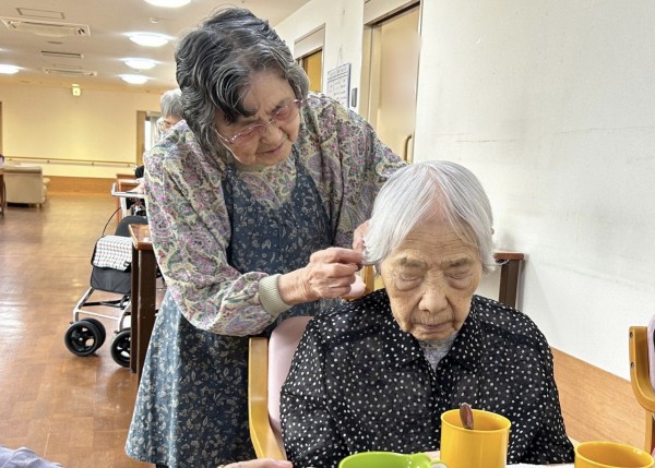 そんなご入居者様も、103歳様の髪をよく整えてくださっています。