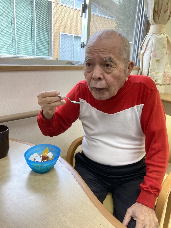 敬老の日のおやつは、皆さんが大好きなプリンアラモードです。