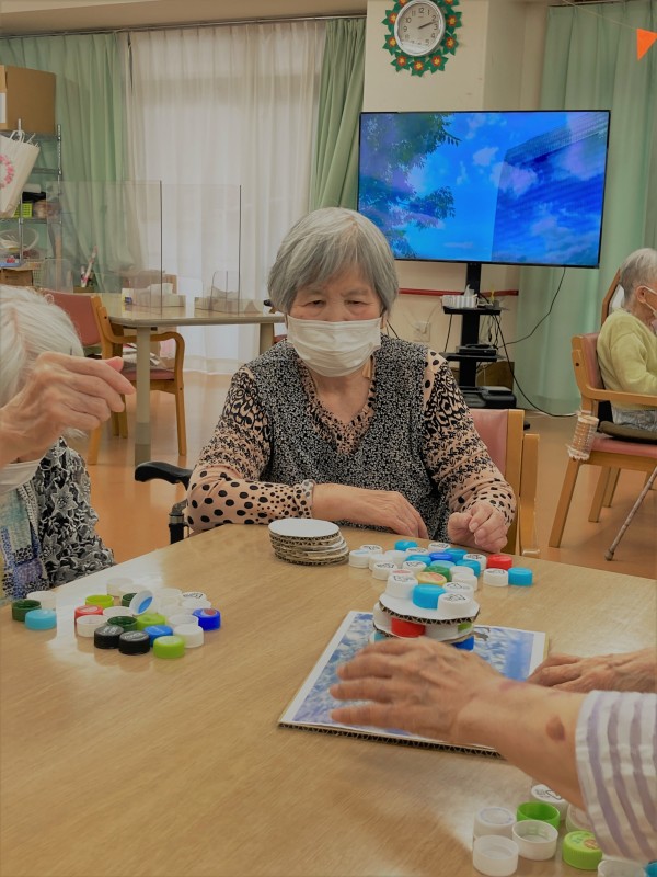 2チームで行いましたー。今回はオセロで使った石の上にキャップを7つ置いた後、石を重ねるようにして同じ作業を繰り返すルールです。さながらサンドイッチ!