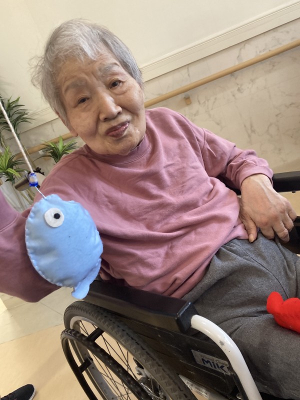 実際にお連れするわけにも行かないので施設でできる魚釣りを楽しんでいただきました。