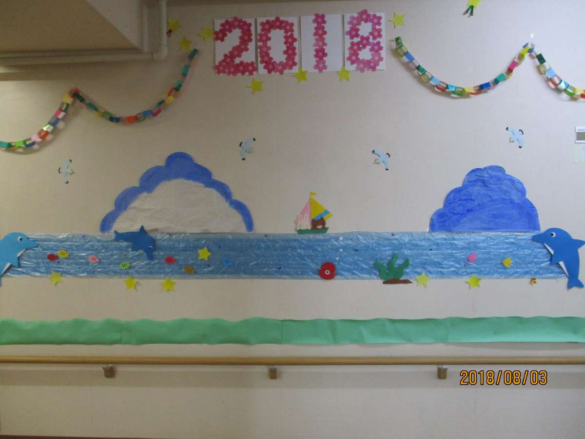 グループホームみんなの家 志木中宗岡のホール内も、夏バージョンになっています♪