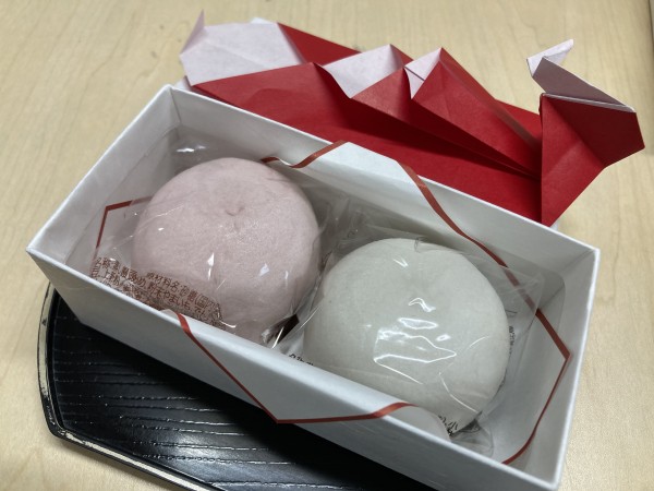 紅白饅頭をおやつで召し上がりました( *´艸`)