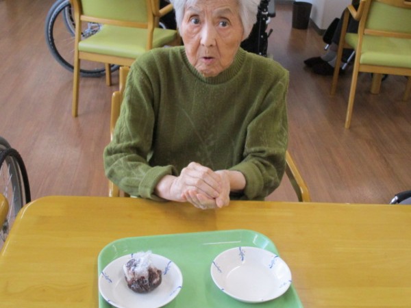 美味しいおはぎを召し上がられています(*^_^*) あっという間に完食されていました。 餡子ときな粉の2種類のおはぎです!(^^)!