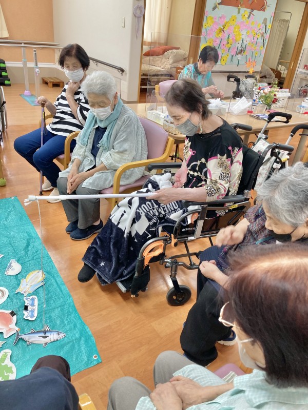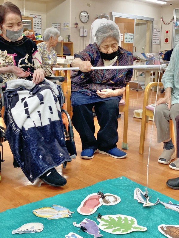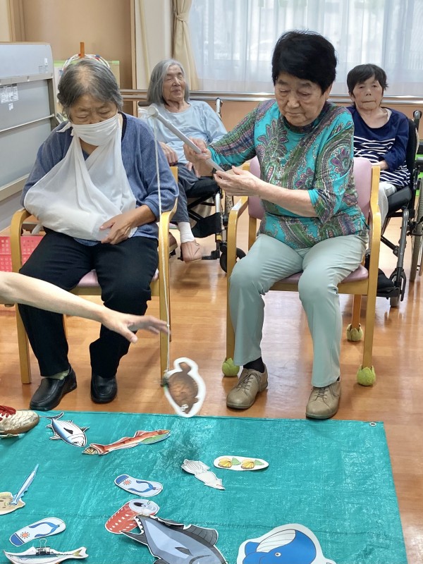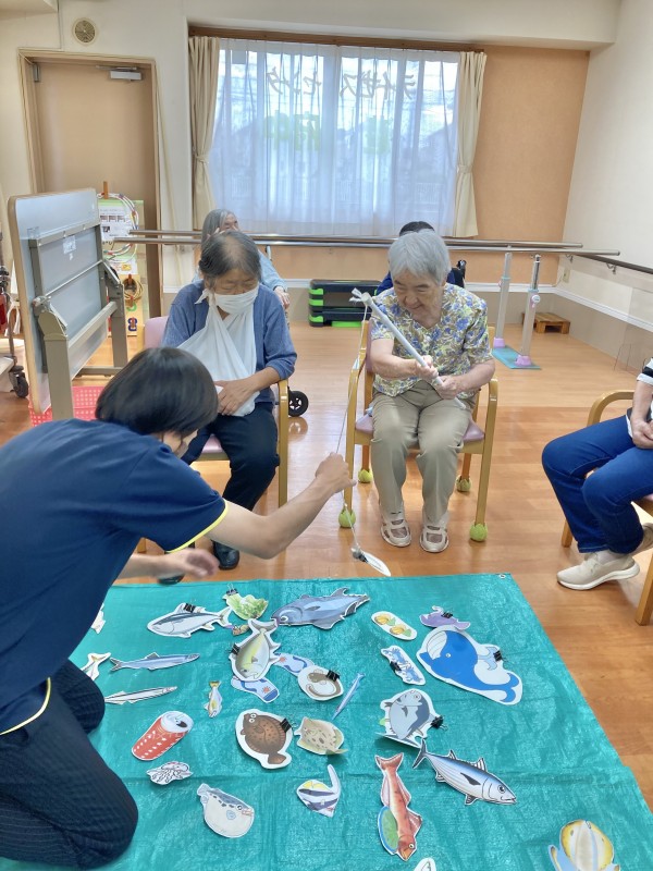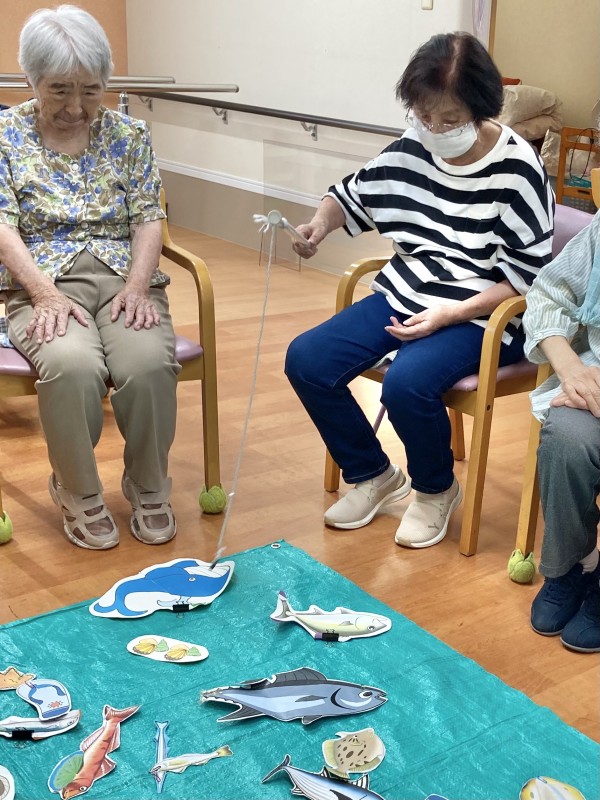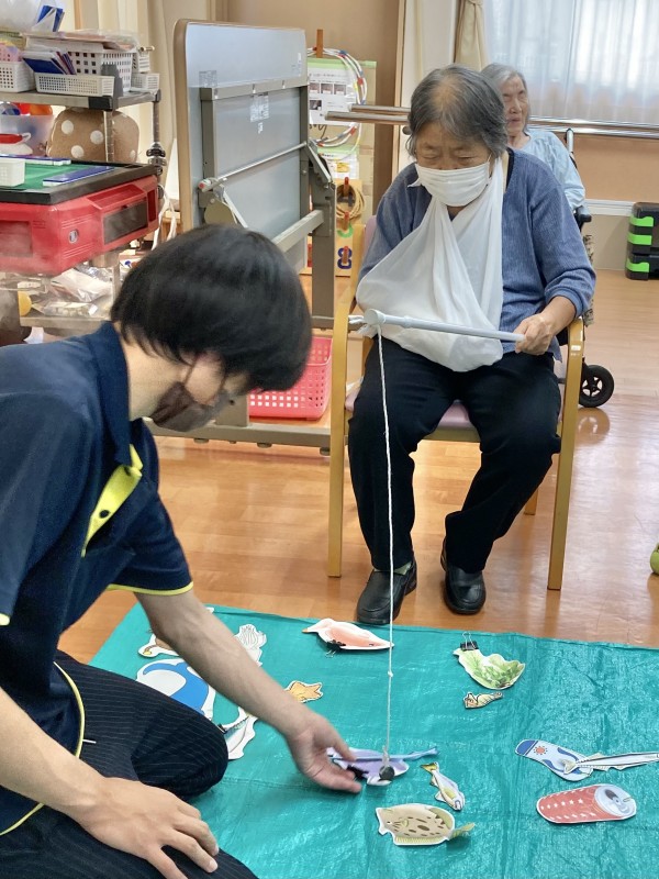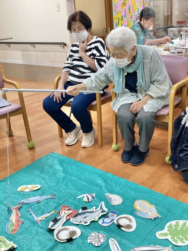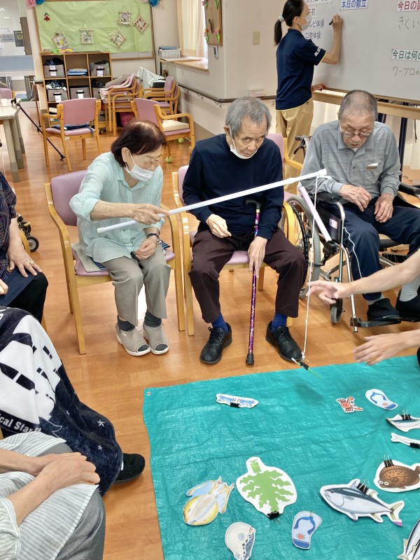 今日のレクは、食材釣りです。