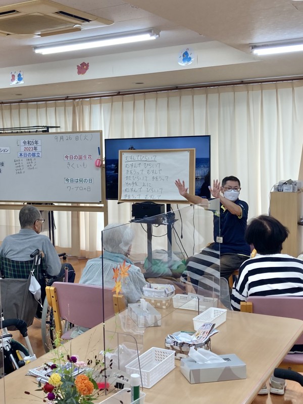 音楽に合わせて、センター長の動きを皆でして、体をしっかり動かしていきます。