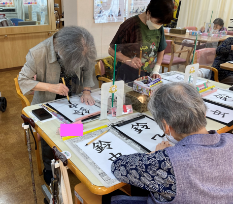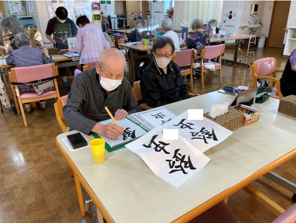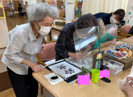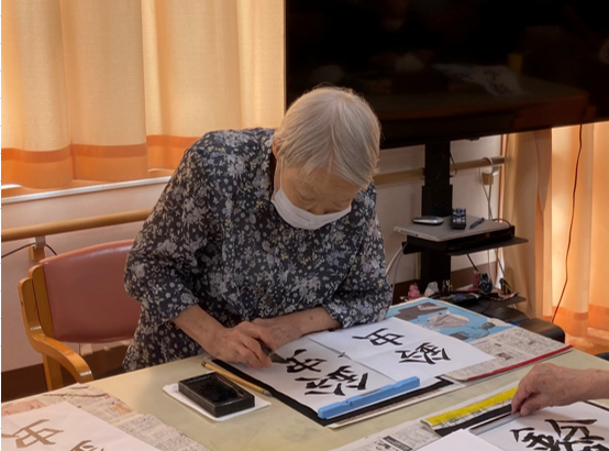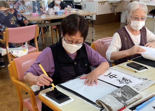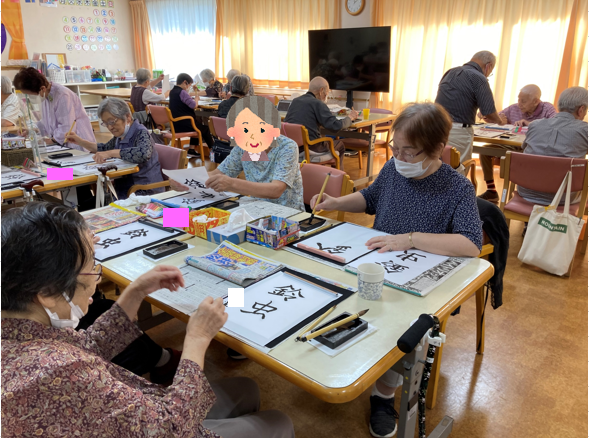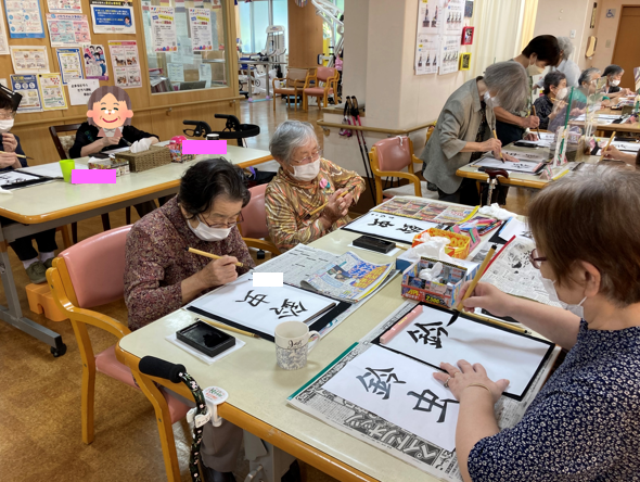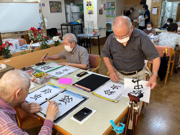 半紙を折っていらっしゃる方もおり、なんで折るのかを伺うと「文字のバランスがとりやすいの」と教えて下さいました(#^.^#)