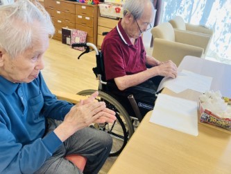 お昼寝から起きて飛び入り参加したお客様も職員と一緒に笑顔でやってくれましたっ!