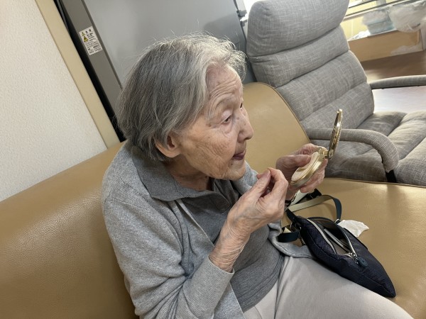 コンパクトを取り出し、身だしなみをしっかりされるお母様はニッコリ笑顔。