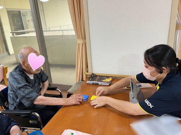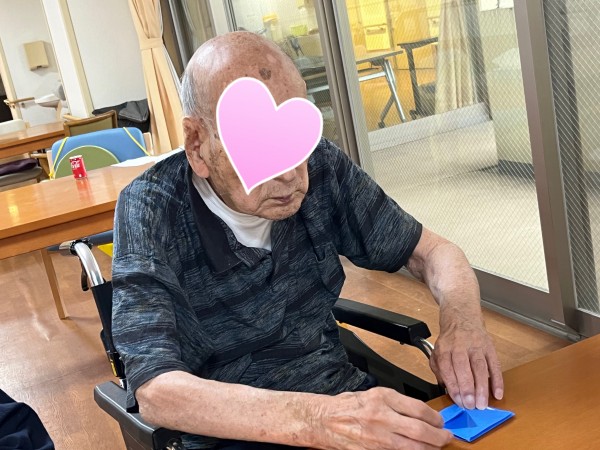 川畑さんと一緒に折り紙をされています。