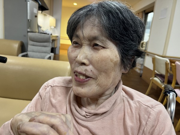 秋になり、ご家族様が持って来てくださったお洋服を着て